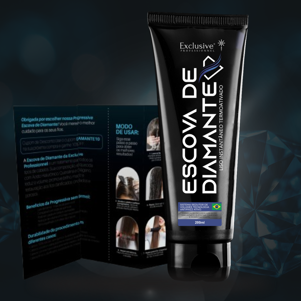 Escova de Diamante é a única fórmula que alisa qualquer tipo de cabelo, sem formol, sem salão e sem destruir os fios. Reconstrói os fios danificados e ainda matiza loiros e brancos, tudo em 1 vez só e com resultado de salão por até 12 meses. Sem dor, sem cheiro forte e sem precisar retocar o tempo todo.