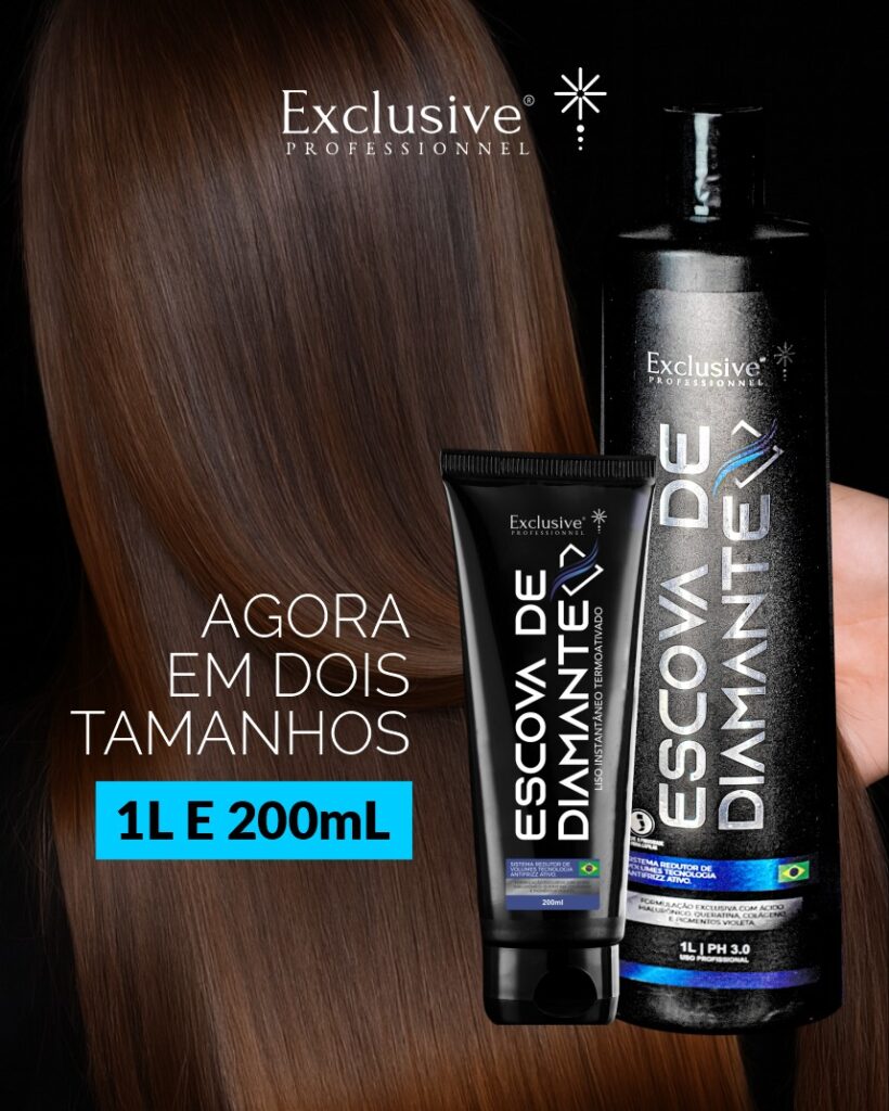 Escova de Diamante é a única fórmula que alisa qualquer tipo de cabelo, sem formol, sem salão e sem destruir os fios. Reconstrói os fios danificados e ainda matiza loiros e brancos, tudo em 1 vez só e com resultado de salão por até 12 meses. Sem dor, sem cheiro forte e sem precisar retocar o tempo todo.